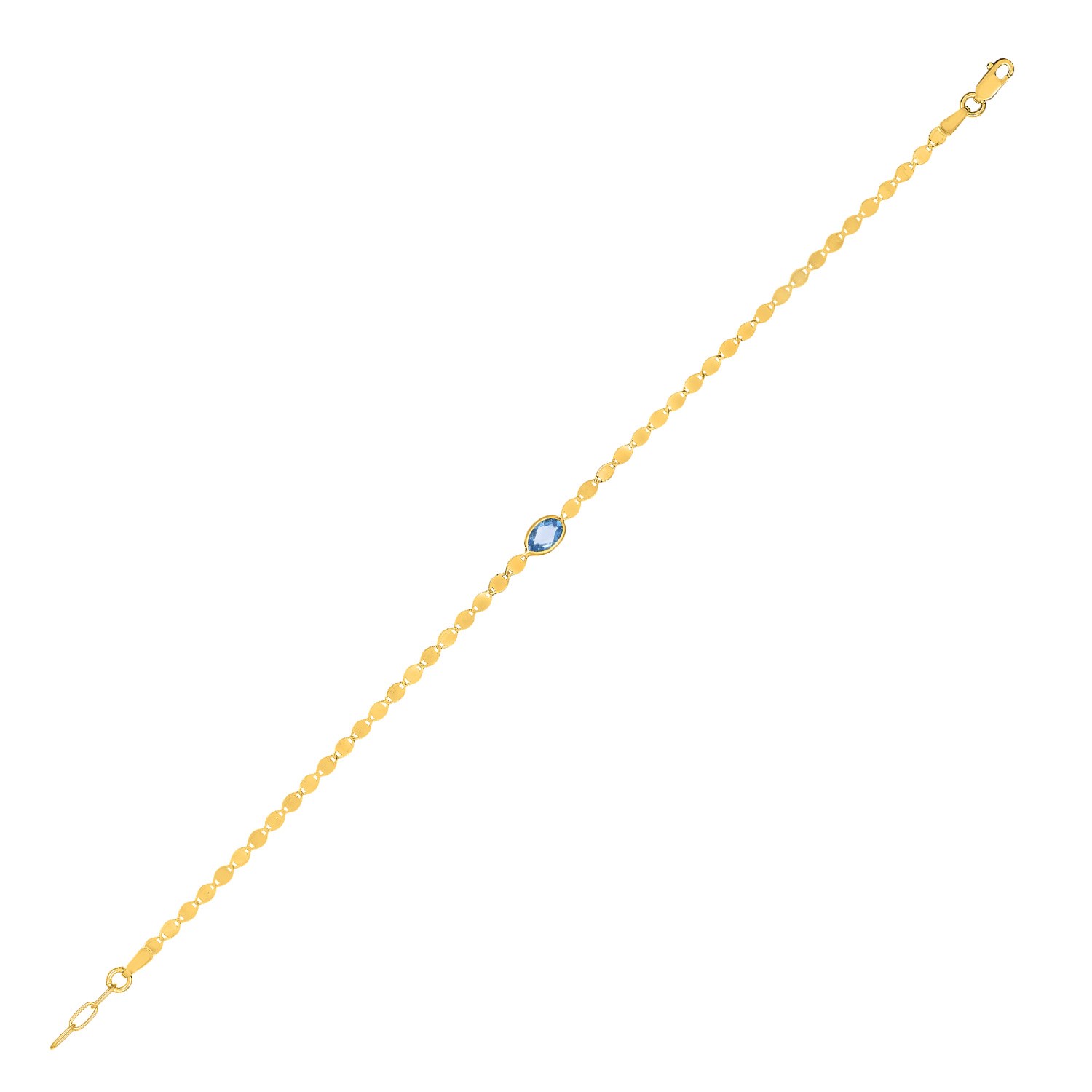 14K Yellow Gold Blue Topaz Mirrored Chain Bracelet (2.20 mm)