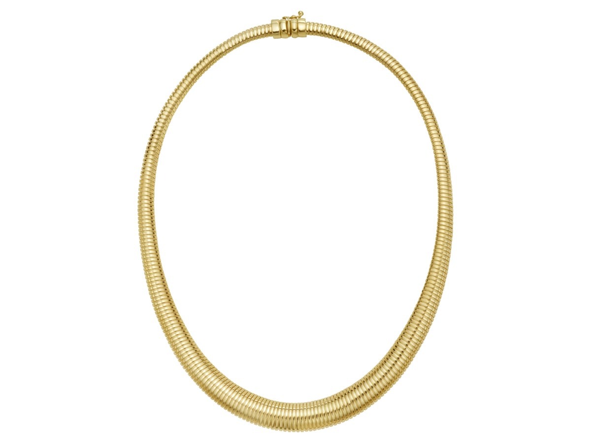 Crafted in radiant 14K yellow gold, this bracelet features a wide 17.90 mm profile with a sleek, mirror-like finish that catches the light at every angle, evoking the crisp, brilliant shimmer of glacial ice. Its substantial presence and smooth contours make it a standout piece, designed to command attention while remaining versatile enough for layering or wearing solo.