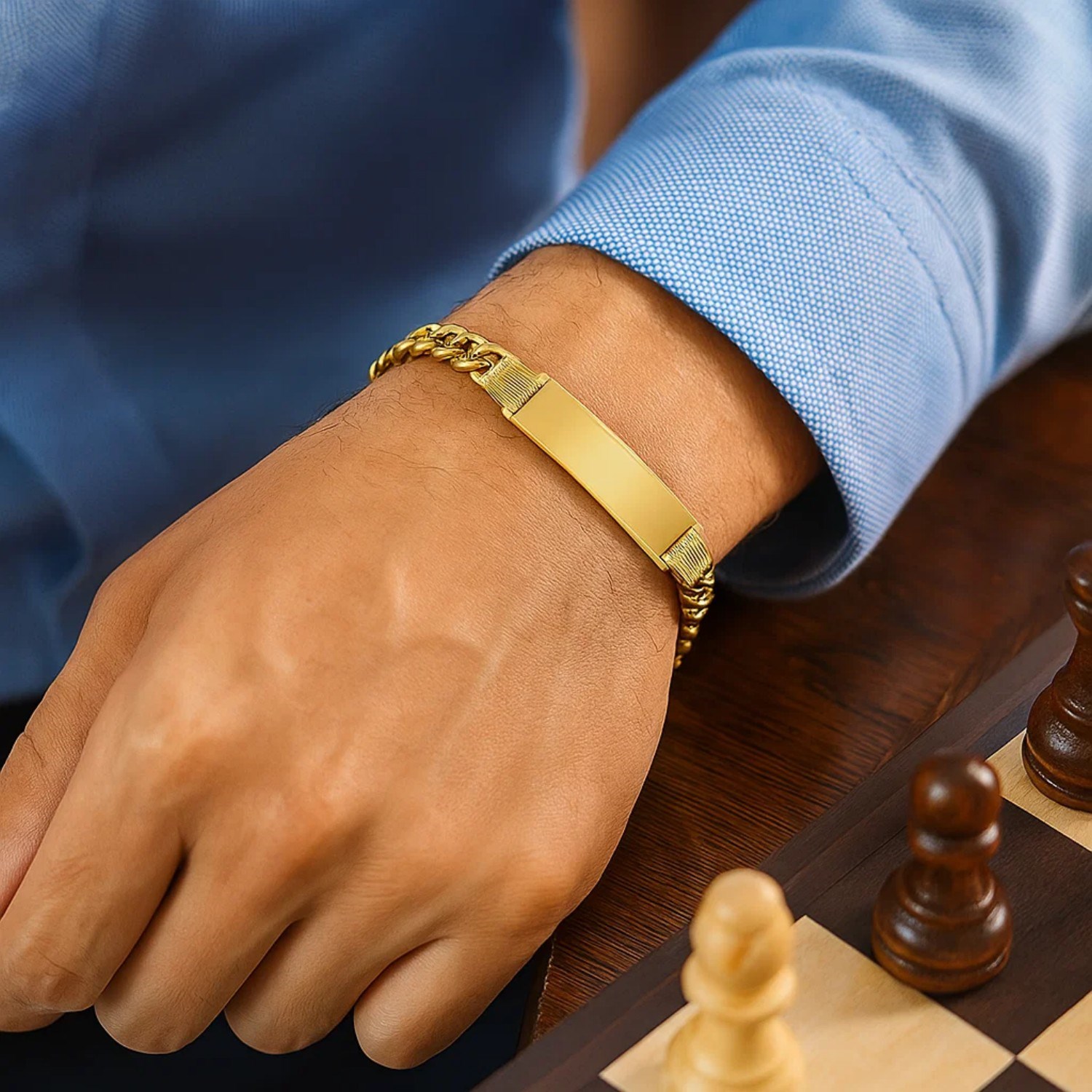 Make a strong yet refined statement with this 14K yellow gold 7.20 mm lite Cuban ID bracelet. Designed for everyday wear, it measures 8 1/4 inches in length and features bold Cuban style links paired with a smooth, engravable ID plate ideal for names, dates, or personal messages. Crafted in lightweight solid gold, this bracelet offers durability without bulk. Finished with a secure box clasp for a comfortable and stylish fit.