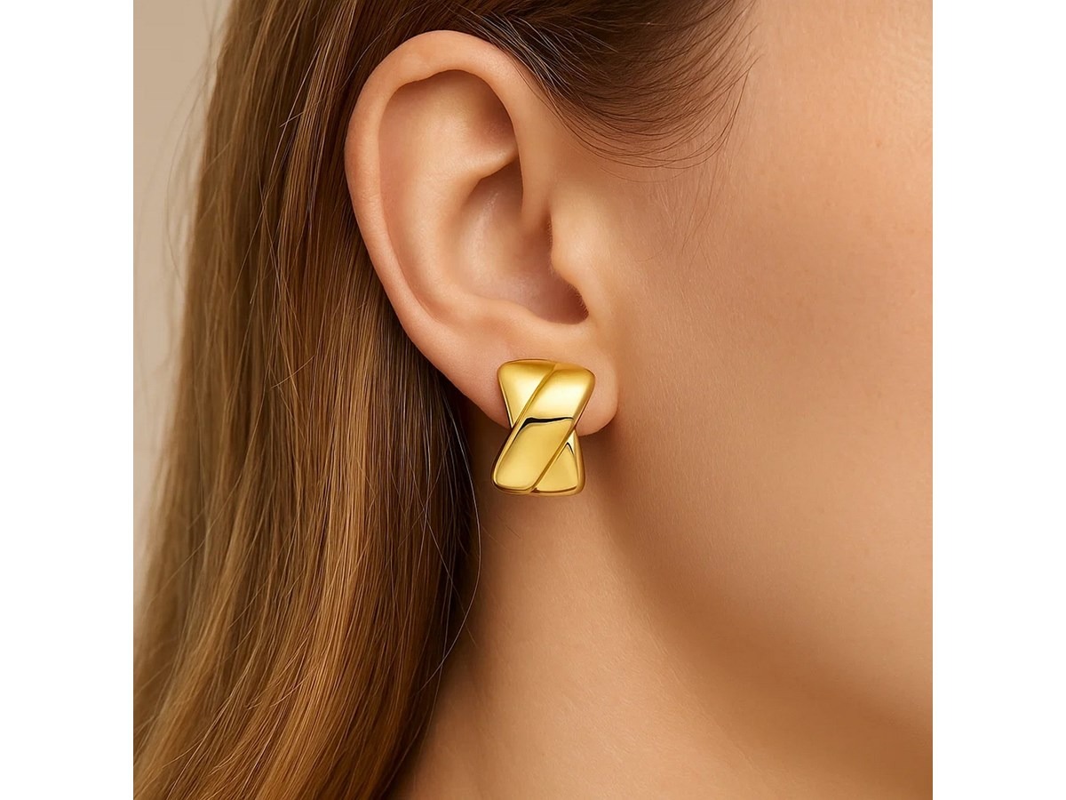 14K Yellow Gold Puffed X-C Hoop Earrings
