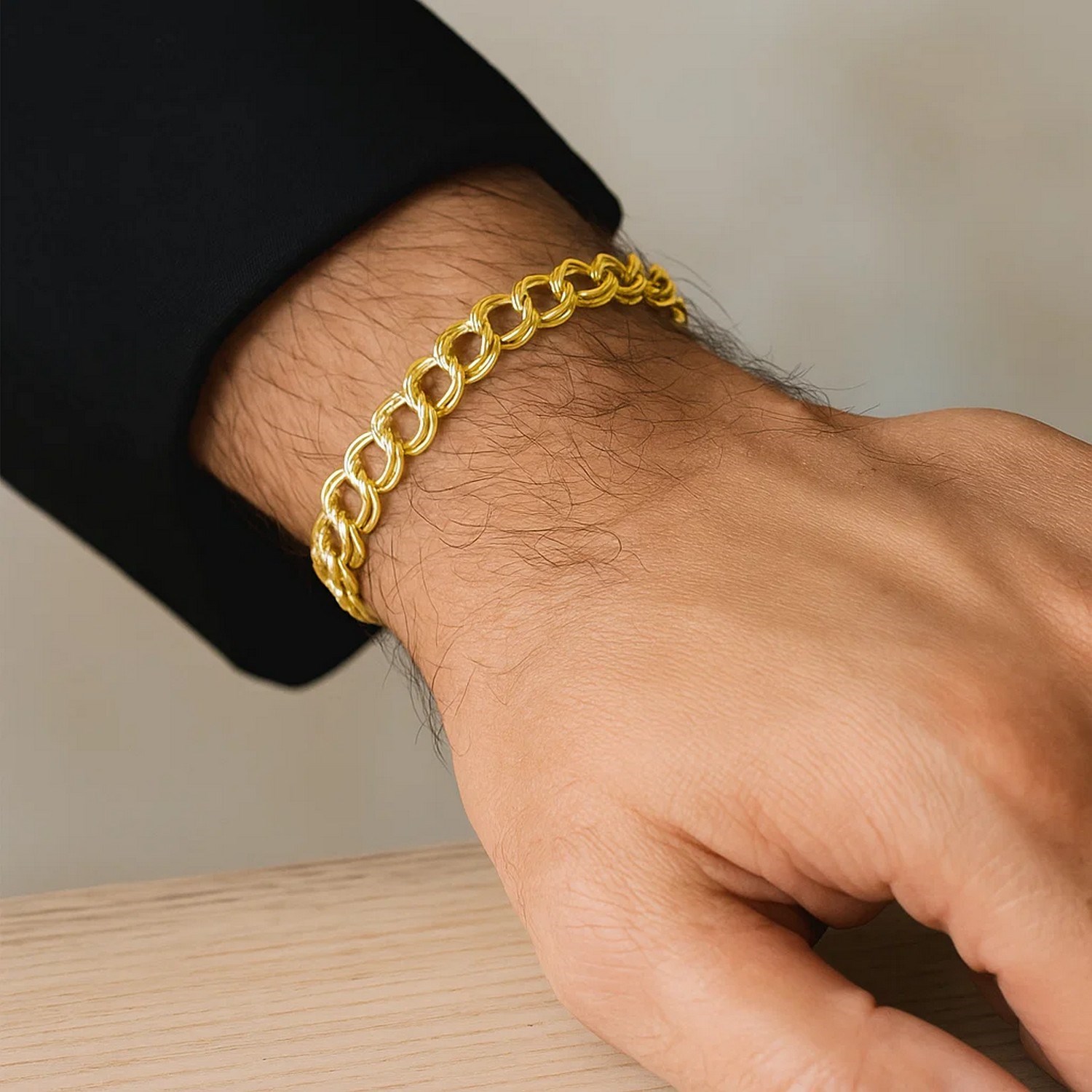 14k Yellow Gold Solid Double Link Charm Bracelet (6.00 mm)