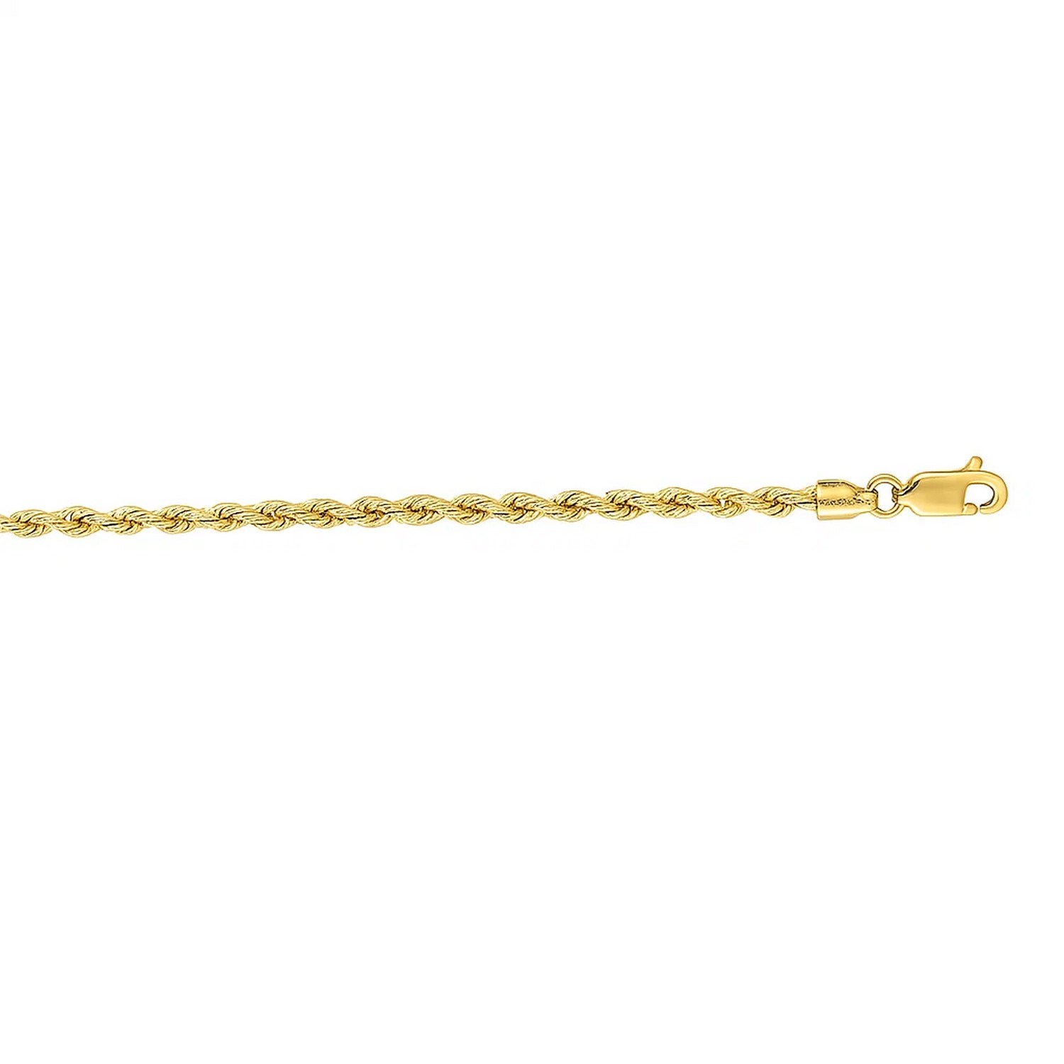 This solid rope bracelet comes in 14k yellow gold and has a width of 2.5 millimeters. Secured with a lobster clasp.