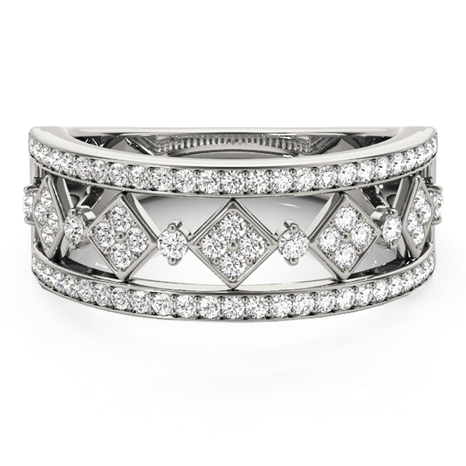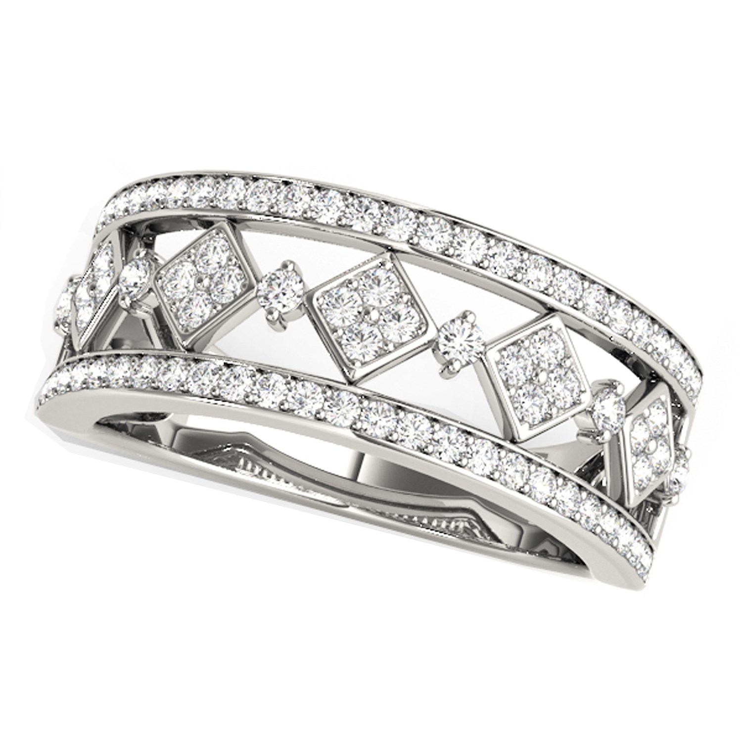 An elegant array of diamonds set in a harlequin-like square pattern adds geometric elegance to this 14k white gold ring.