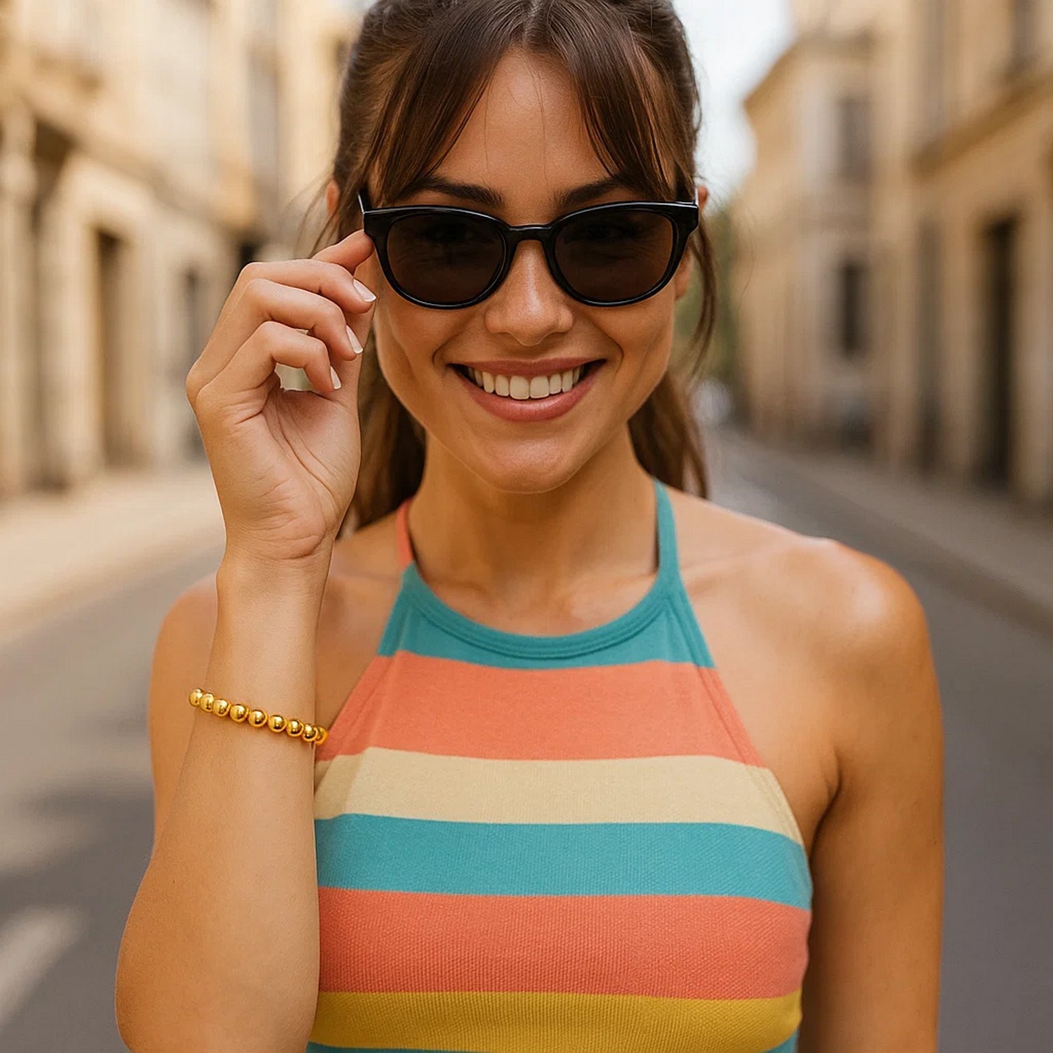 This 14k Yellow gold bracelet features polished 8mm beads in a clean, symmetrical design. The timeless appeal of the gold beads feels both modern and traditional, making it a versatile accessory. An adjustable 1-2 inches extender ensures a comfortable fit, while the secure lobster clasp adds durability. Effortlessly elegant, this bracelet is a refined choice for everyday wear or special moments.
