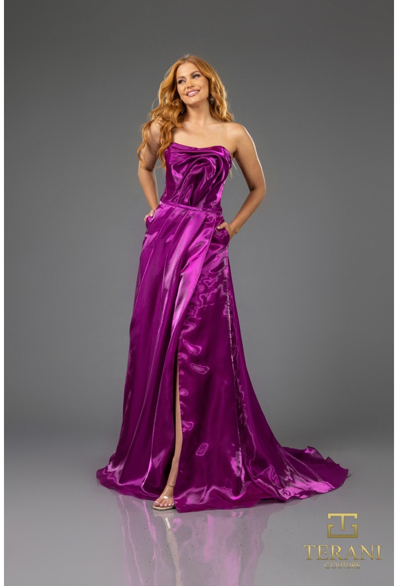 Step into understated glamour with the Terani Couture 251E4637, a refined evening gown designed to balance sophistication and contemporary style. This couture design features a sleek, figure-flattering silhouette that enhances natural lines while maintaining an air of effortless elegance. Meticulous craftsmanship and thoughtful detailing give the gown a polished finish that feels timeless yet modern.