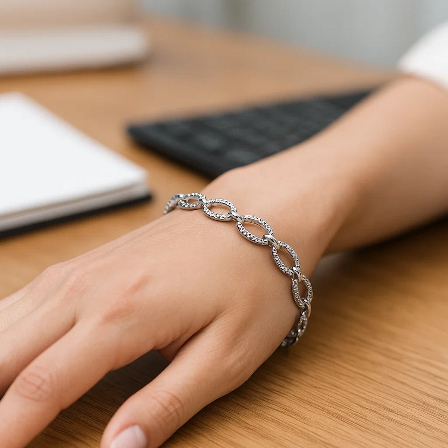 Be the first to review “Textured Oval Link Bracelet in 14k White Gold (8.60 mm)”